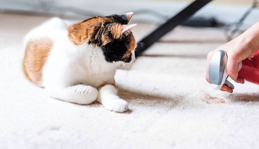 Lekeyi temizlemek için amonyak içeren ürünlerden kaçının, çünkü bu koku evcil hayvanınızı aynı noktaya tekrar yönlendirebilir.